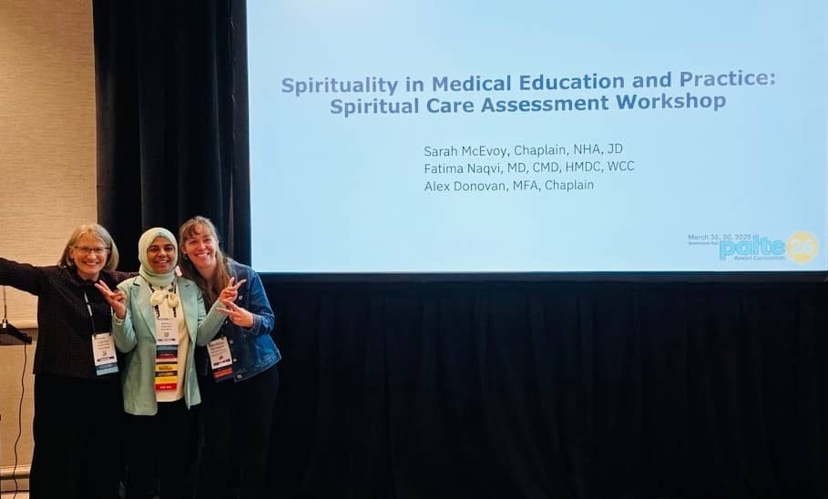 Sarah McEvoy, Co-Convener of TC's Elder Care Research Network, alongside Dr. Fatima Naqvi, CMD, and Alex Donovan, BCC, presented Spirituality in Medical Education and Practice: Spiritual Care Assessment Workshop.