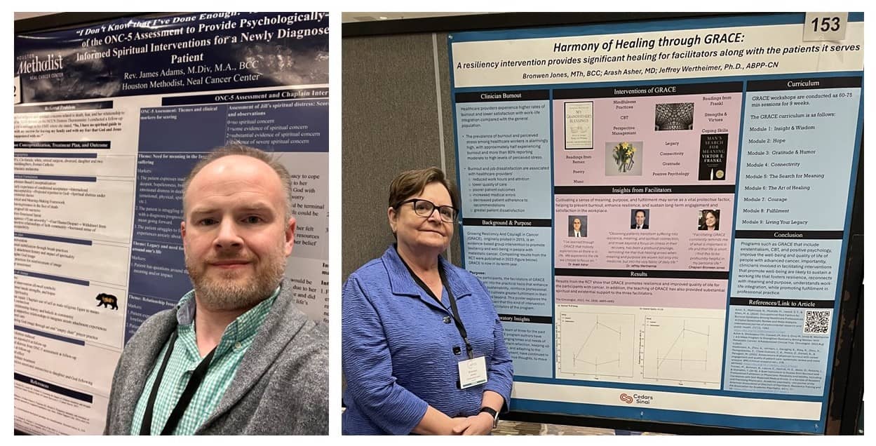 Rev. James Adams, Senior Chaplain with the Neal Cancer Center of Houston Methodist, presented case report, “ ‘I Don’t Know That I’ve Done Enough’: A Chaplain’s Use of the ONC-5 Assessment to Provide Psychologically-Informed Spiritual Interventions for a Newly Diagnosed Patient.” It illustrated the ways that chaplains utilize evidence-based assessments to support our oncology patients in navigating spiritual and emotional distress following a diagnosis. James is also the moderator for a Bereavement special interest group within Transforming Chaplaincy's (TC) Hospice-Palliative Spiritual Care Research Network.